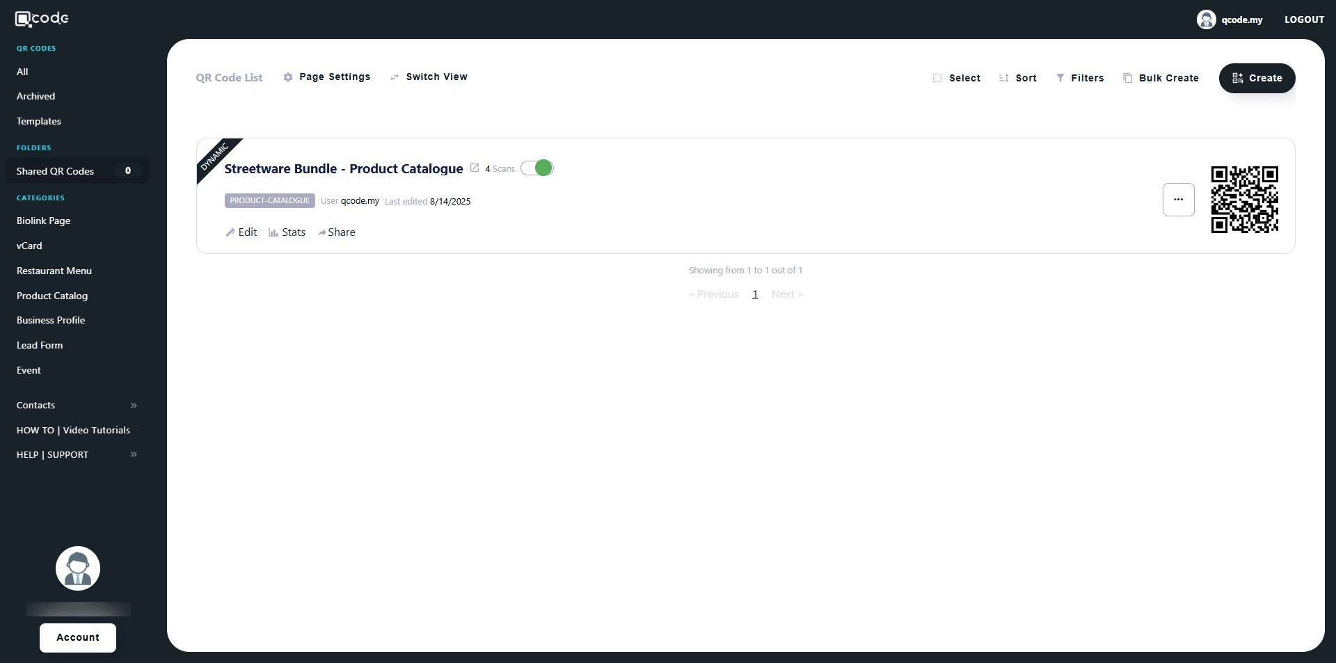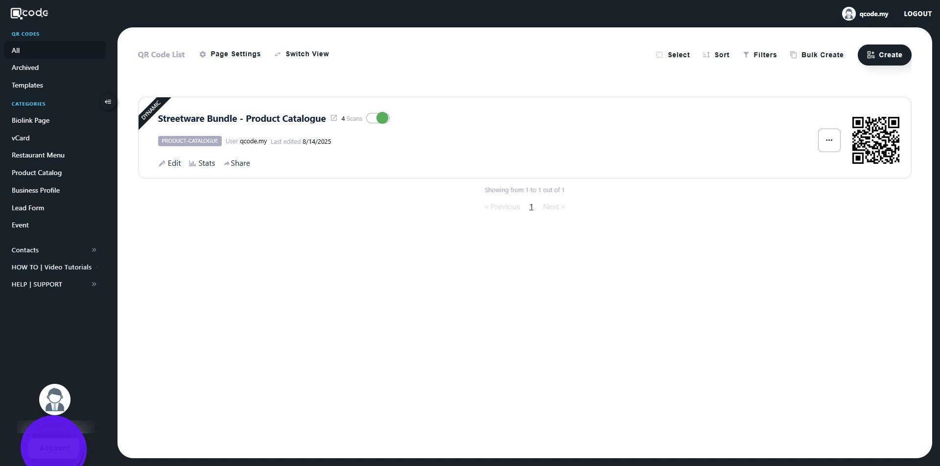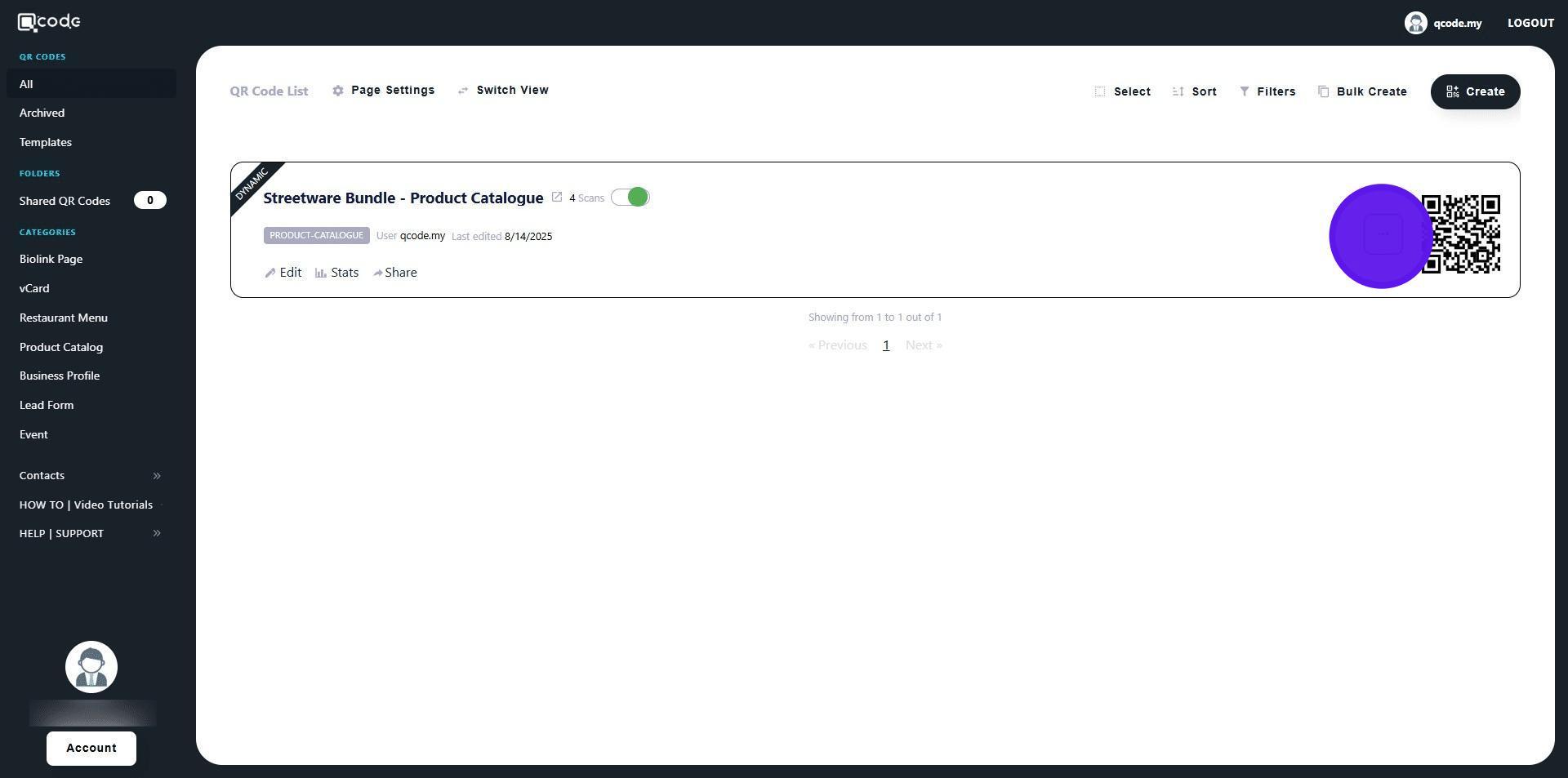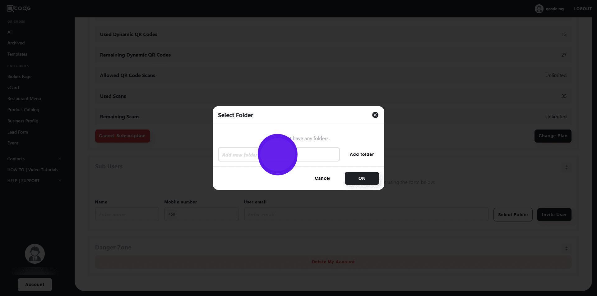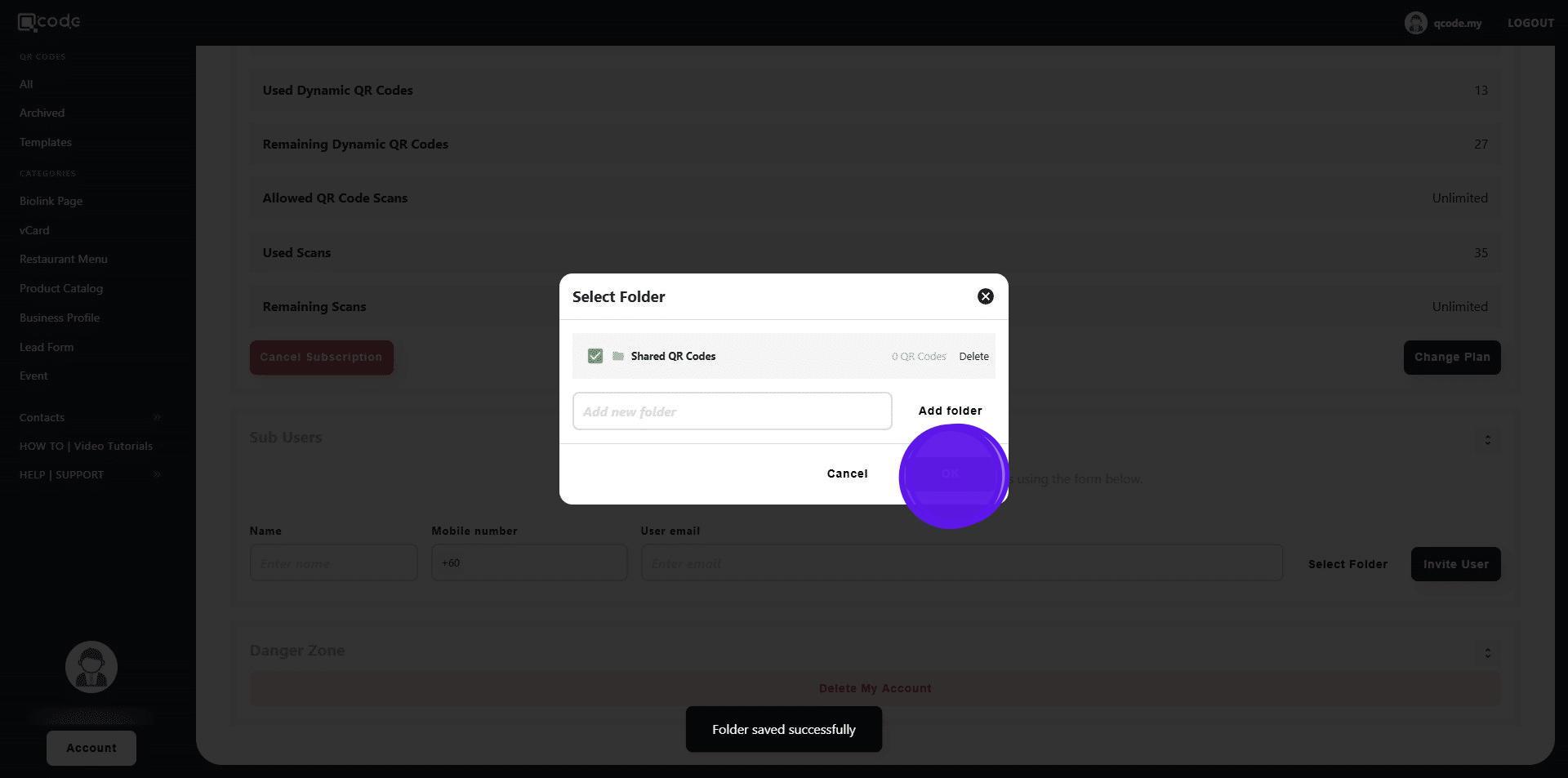 13. Choose the QR Code that you want to share with the Sub User by clicking on the three dots button