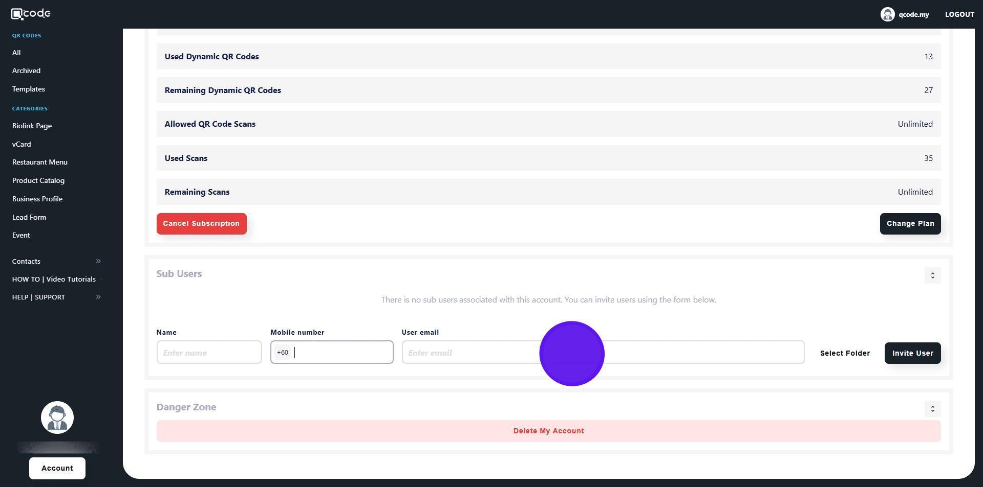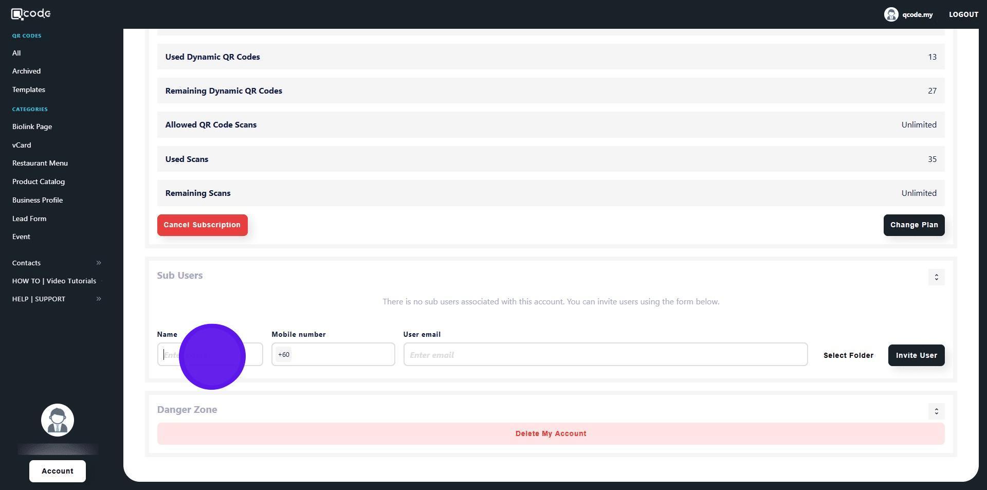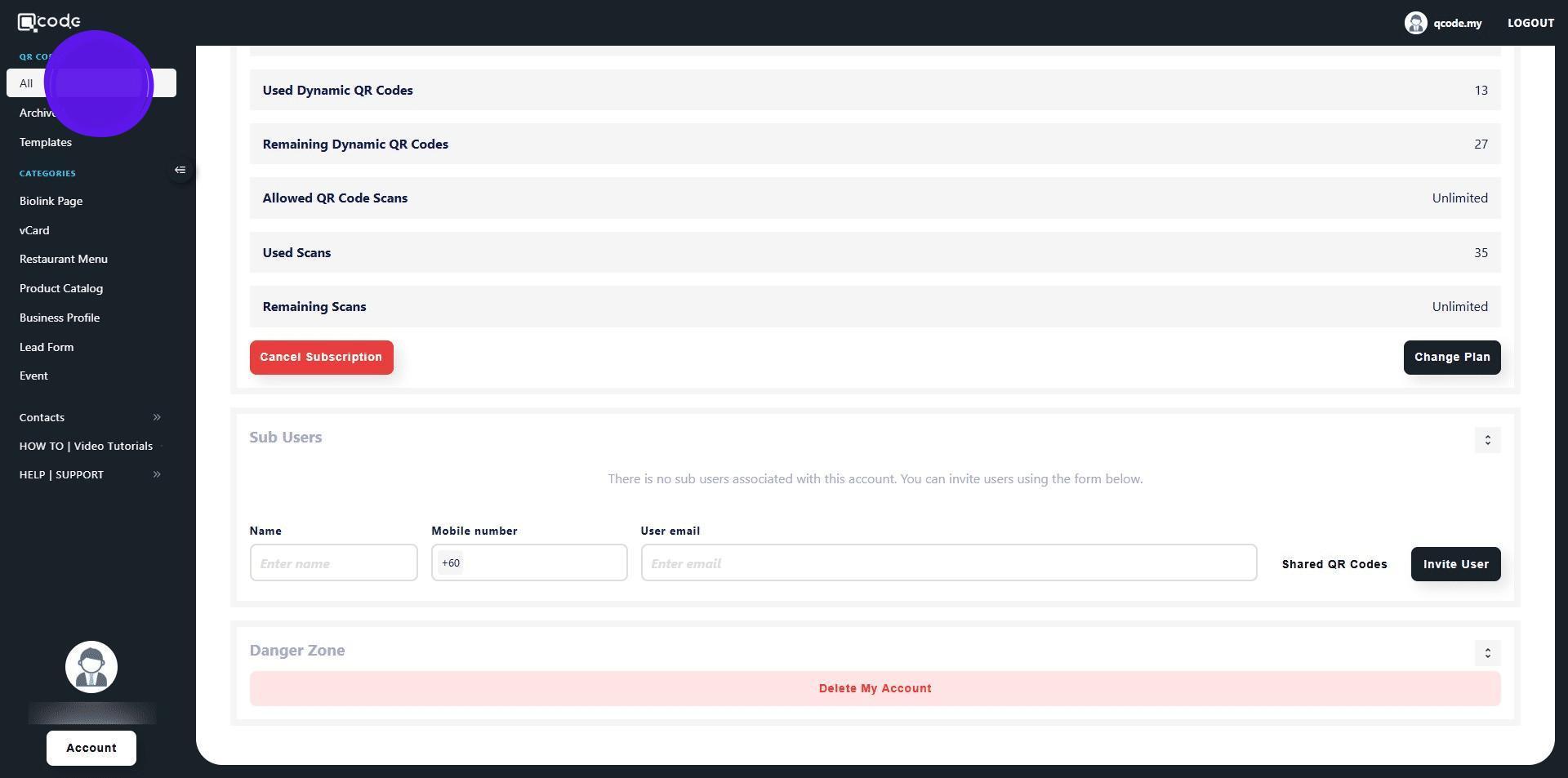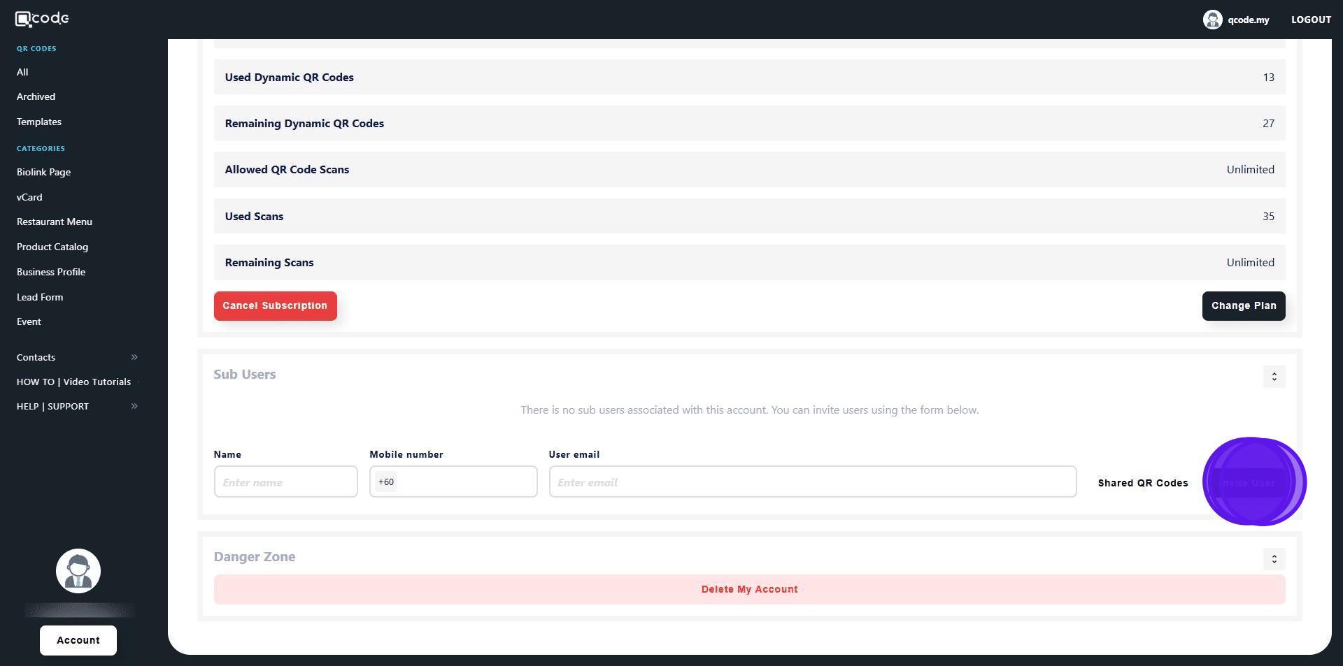 18. Here you will find all of the QR Code(s) that you share with the Sub User