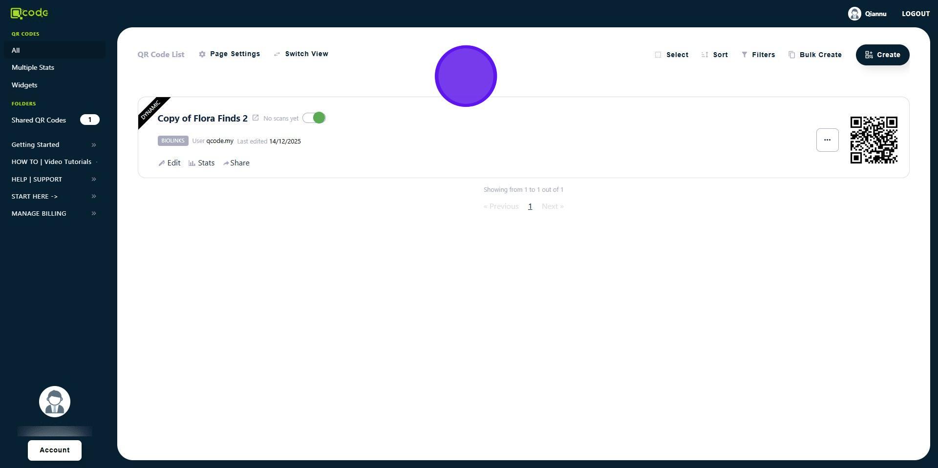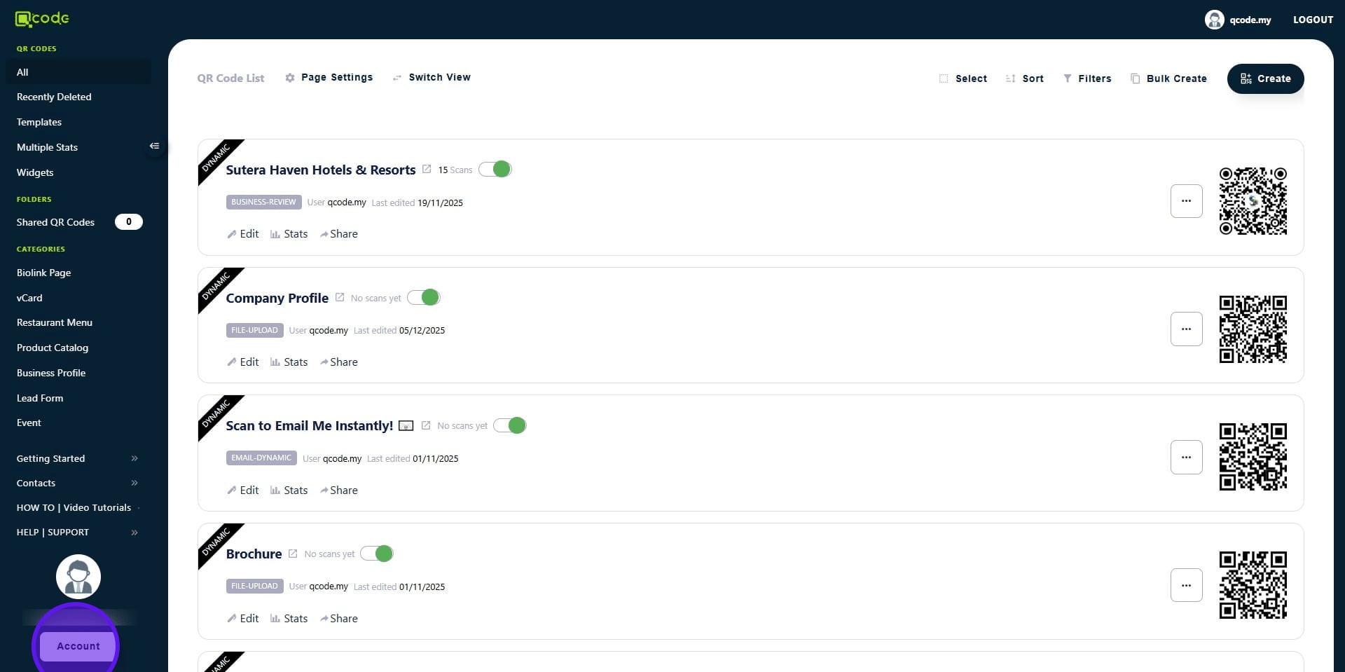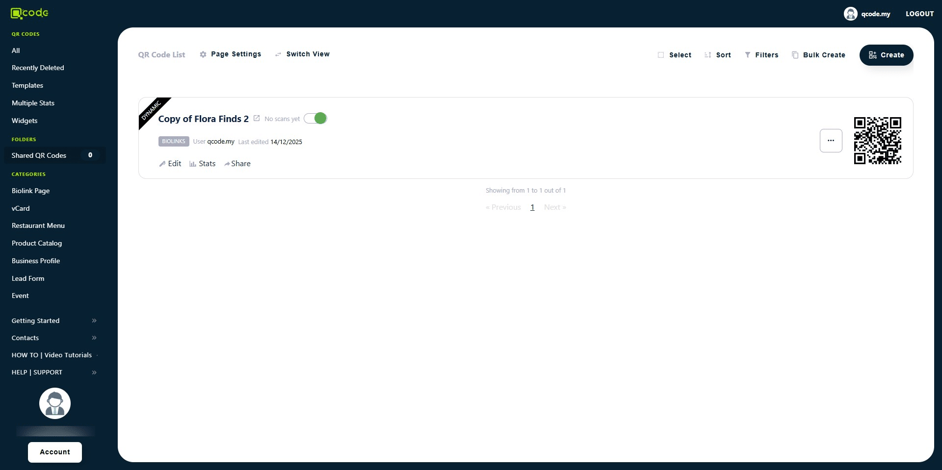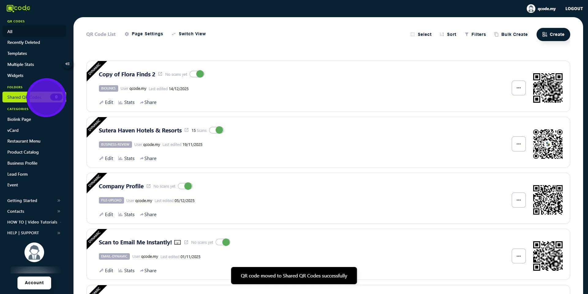 14. Now the template QR Code is in your Sub-user's account! 👏