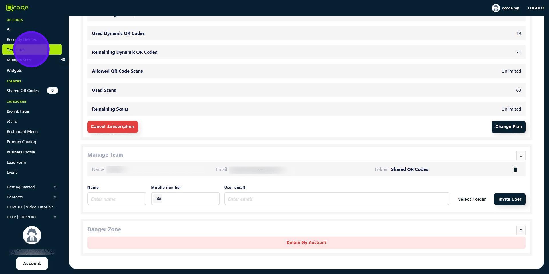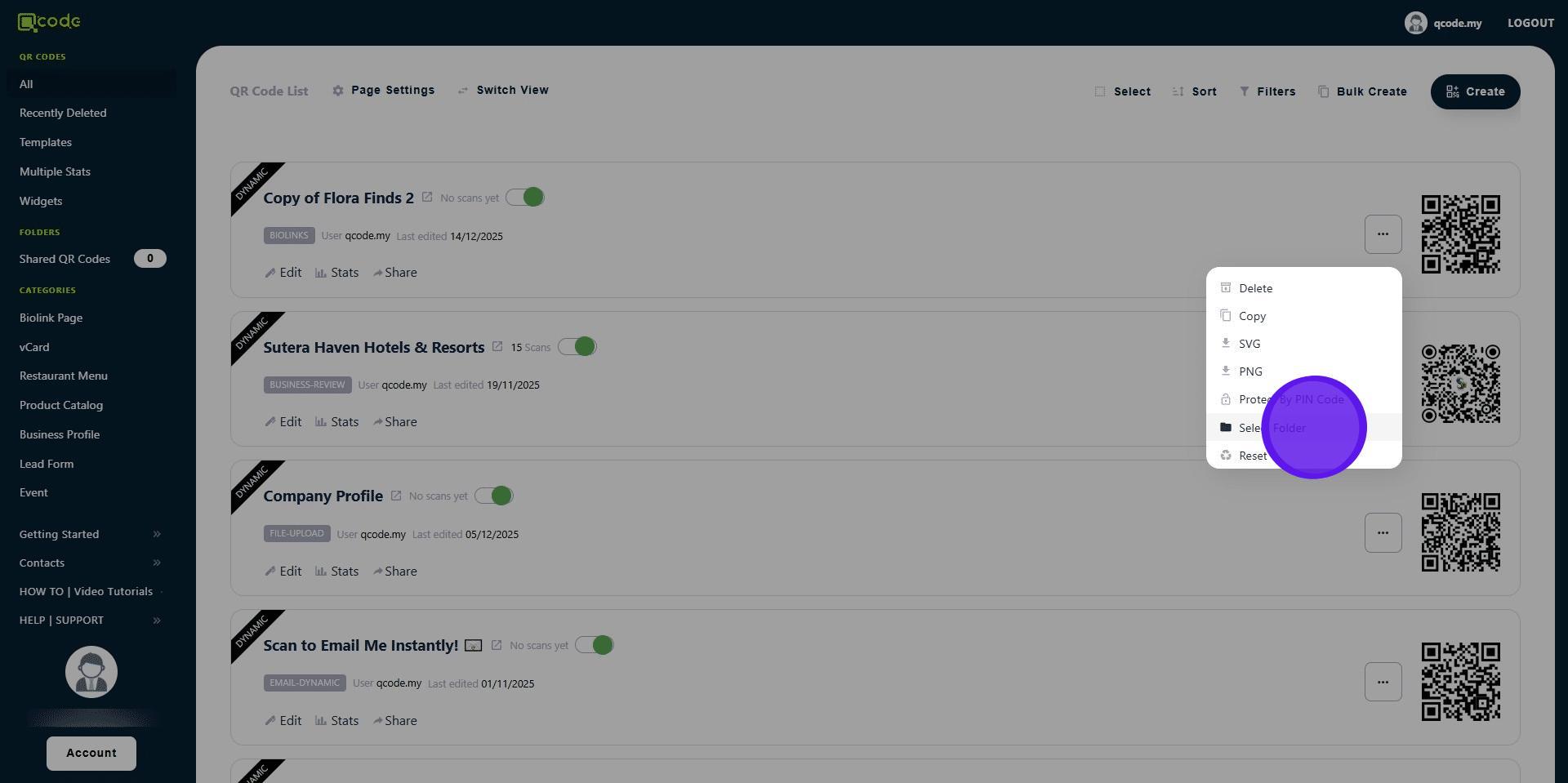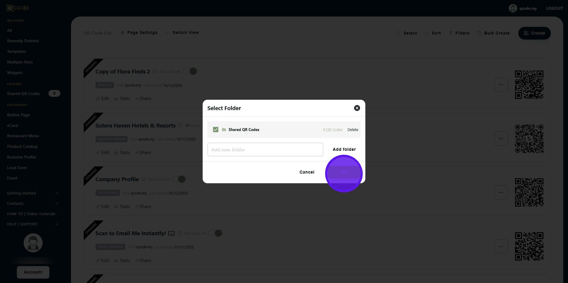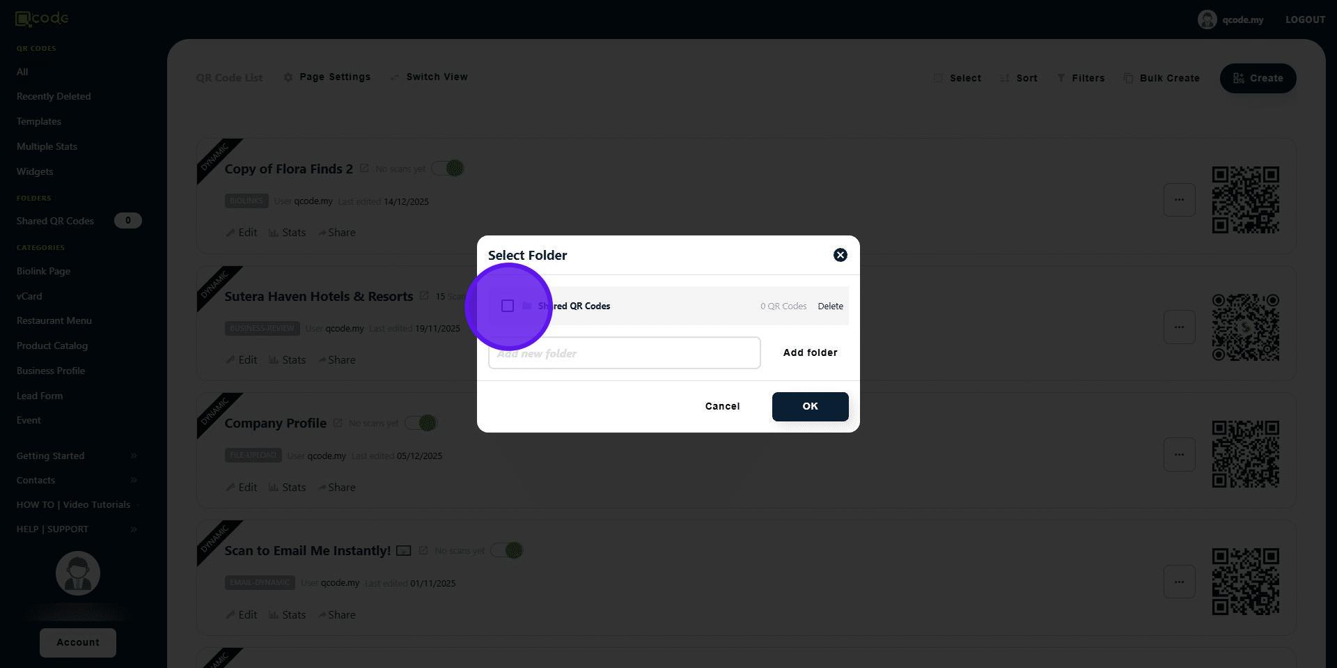14. Now the template QR Code is in your Sub-user's account! 👏