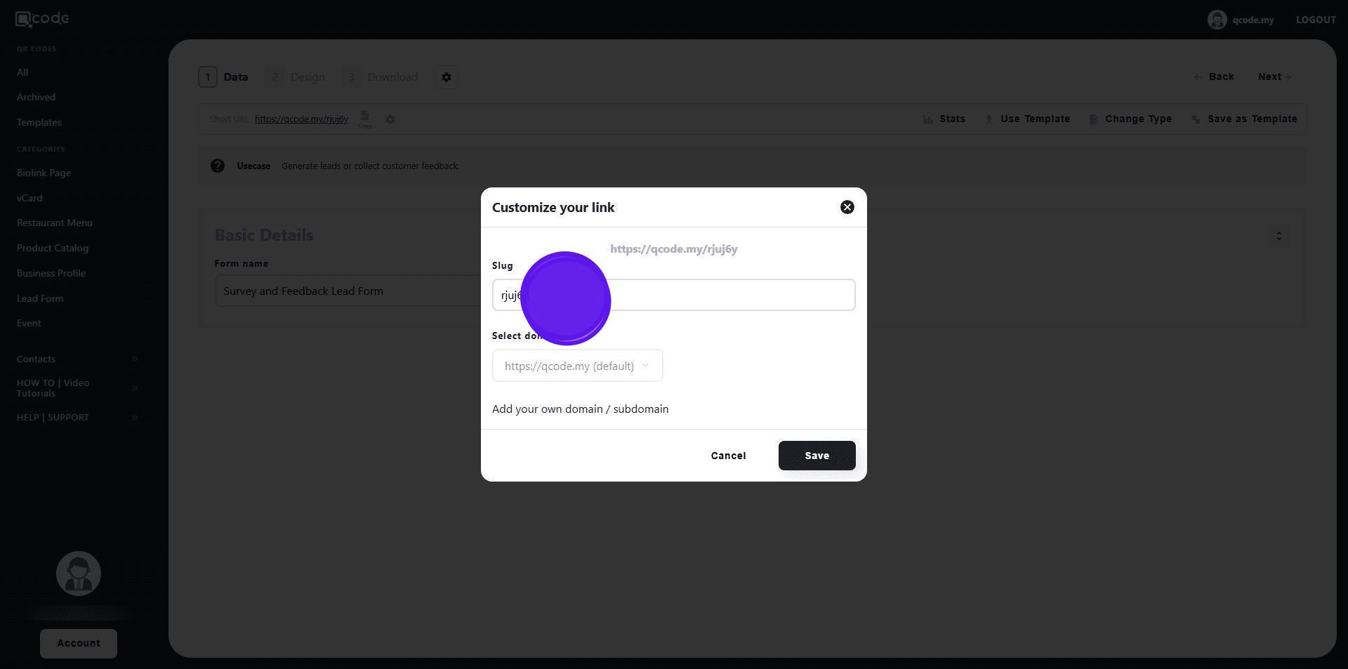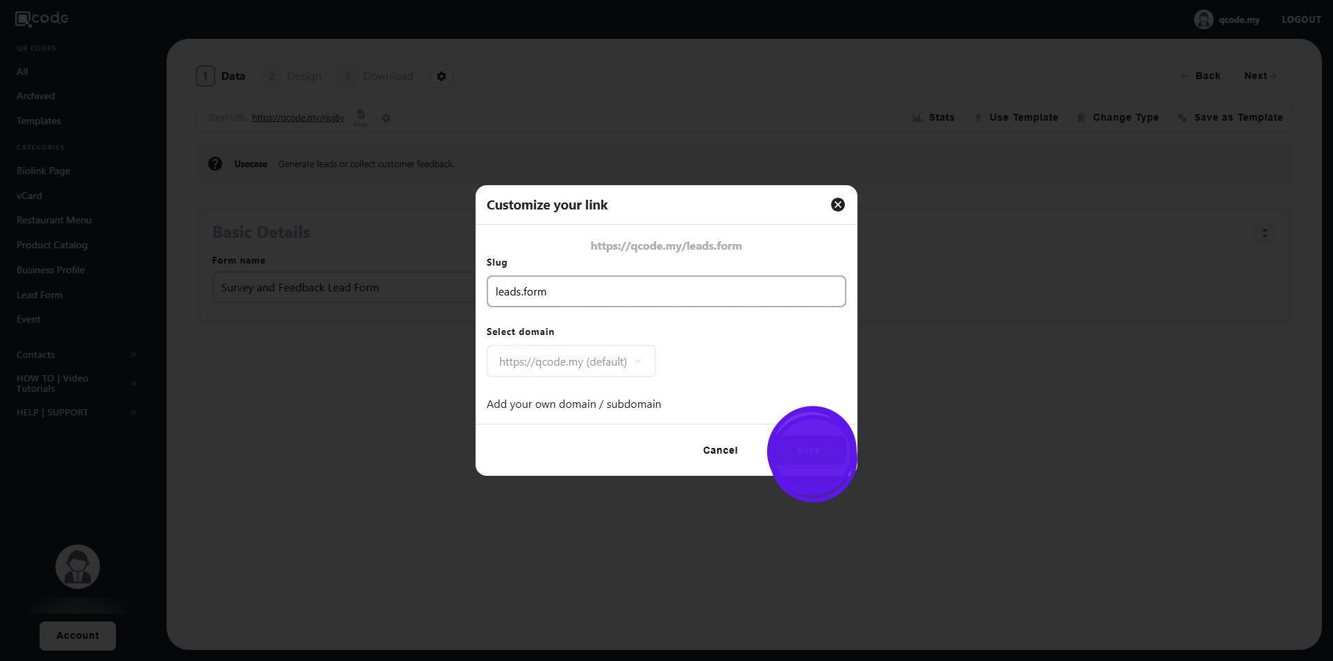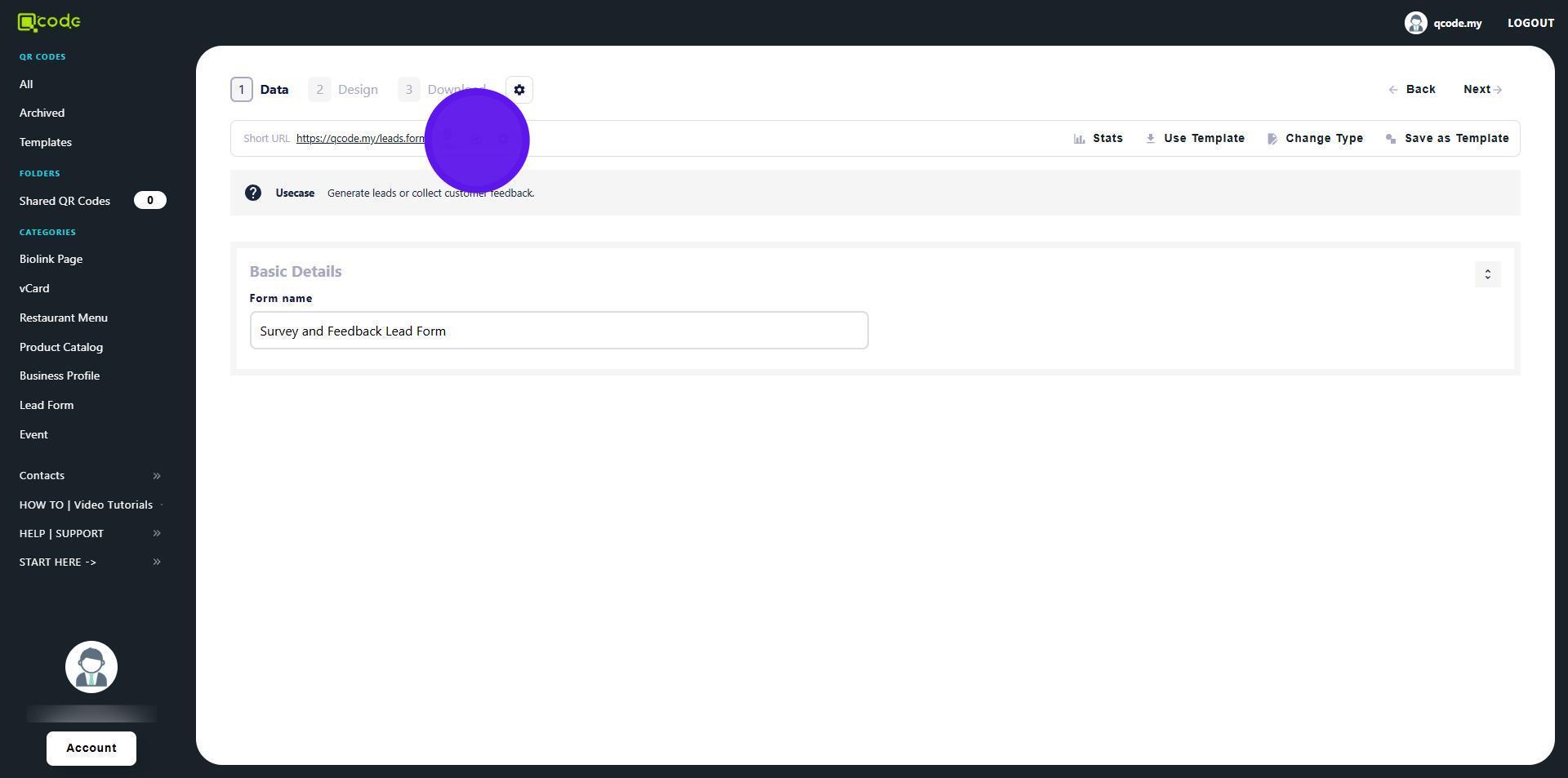 1. Navigate to https://qcode.my/dashboard/qrcodes