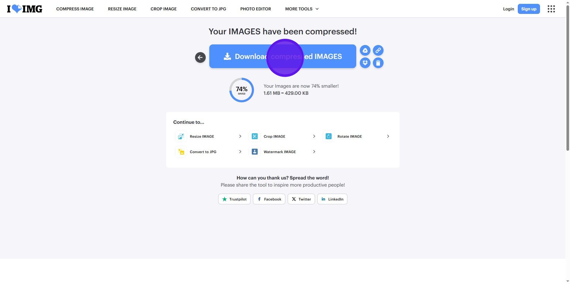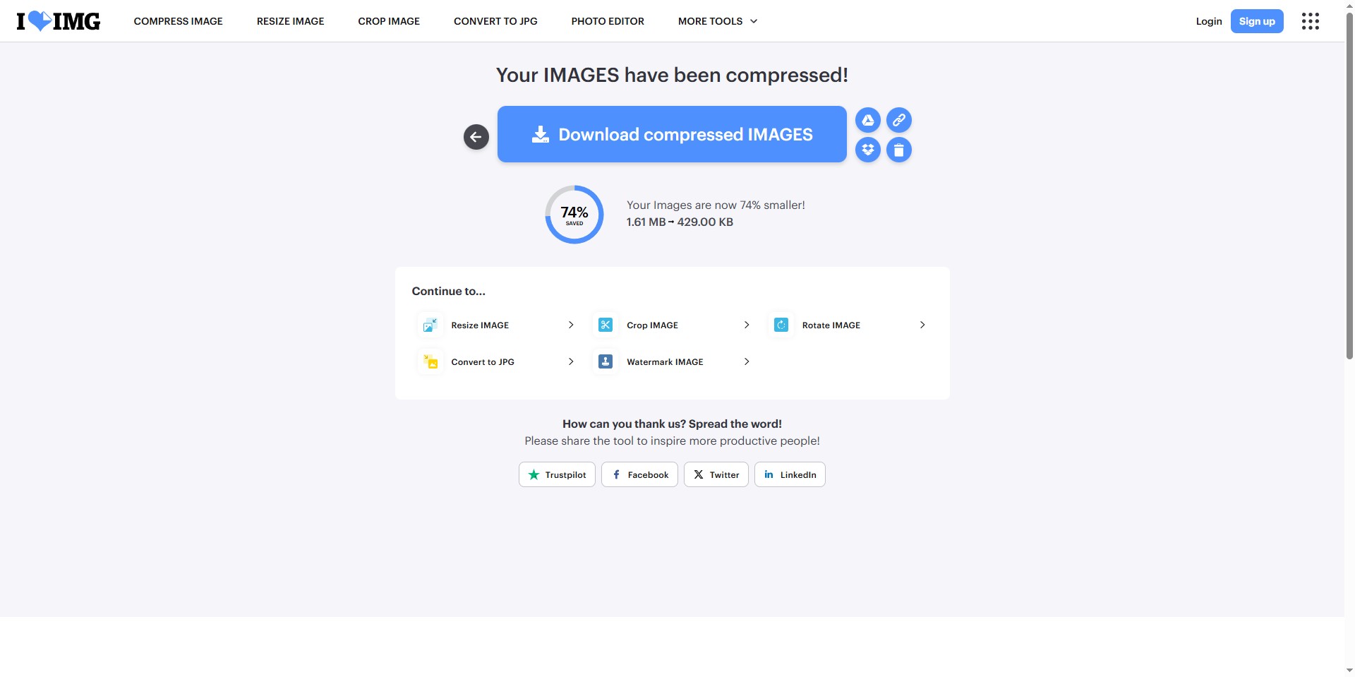How to compress images to make your page load faster 1. Navigate to https://www.iloveimg.com/2. Click on Compress IMAGE3. Click on Select Images to upload your images4. You can also add images by clicking on the Plus icon5. Click on Compress IMAGES6. Click on Download compressed IMAGES7. Well done you have made it to the end 🚀