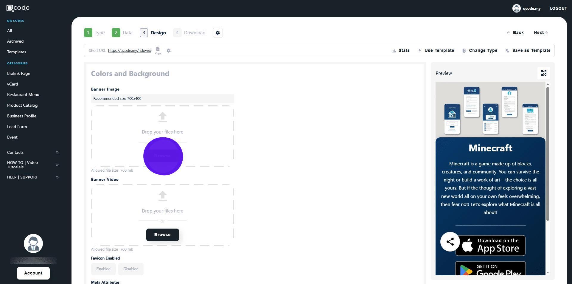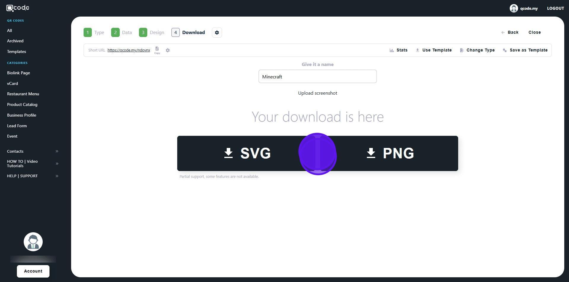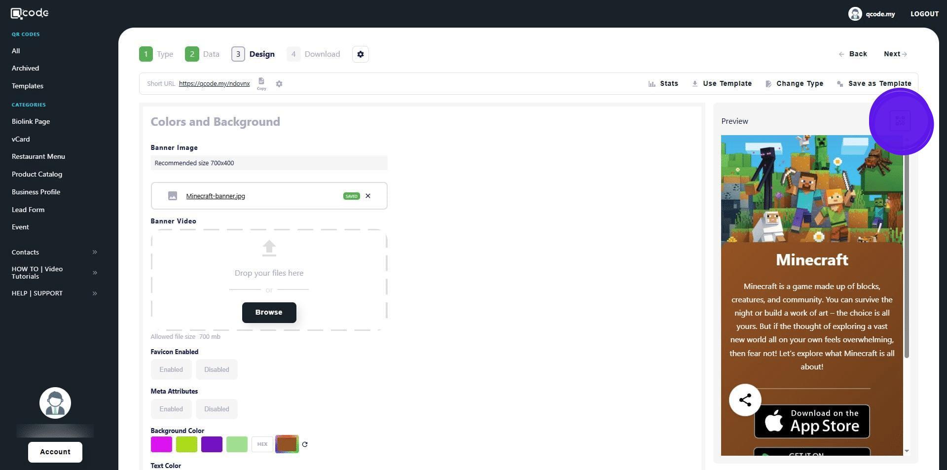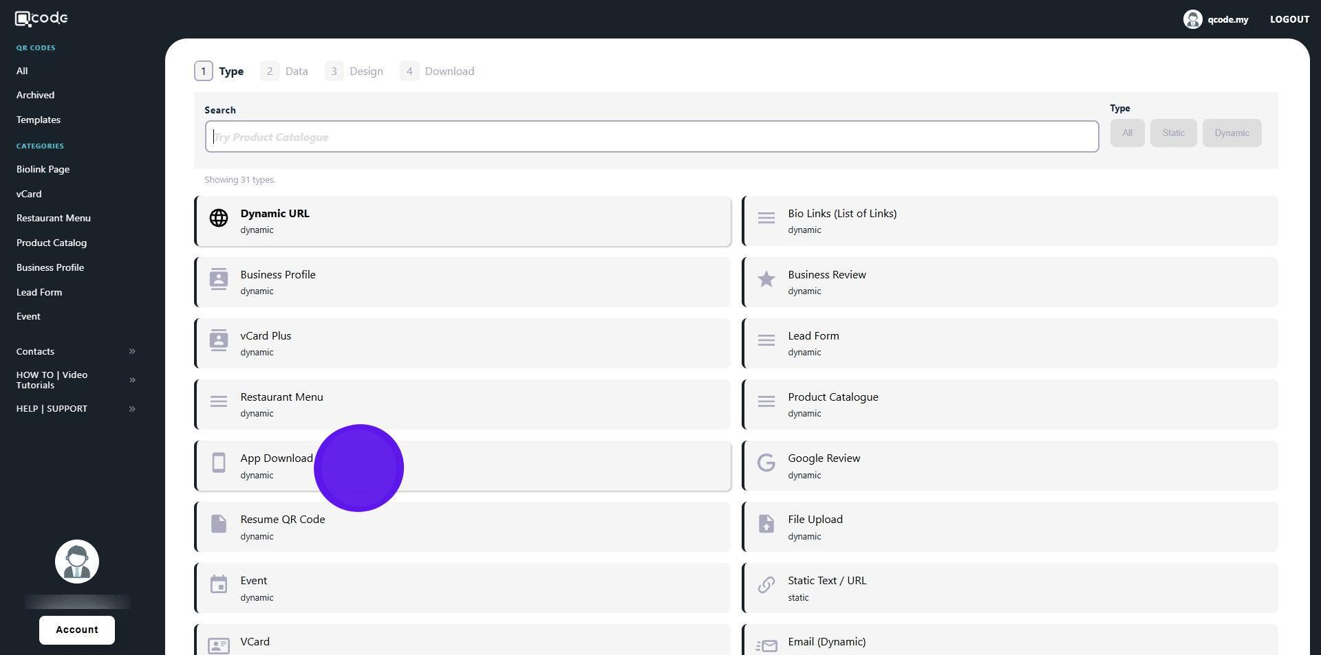 1. Navigate to https://qcode.my/dashboard/qrcodes
