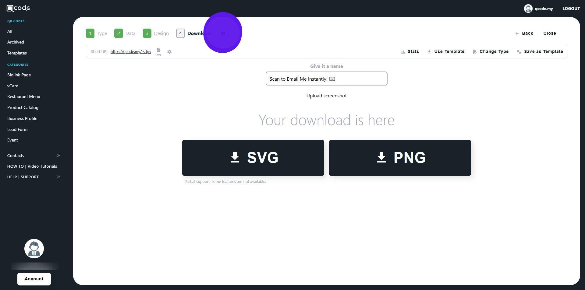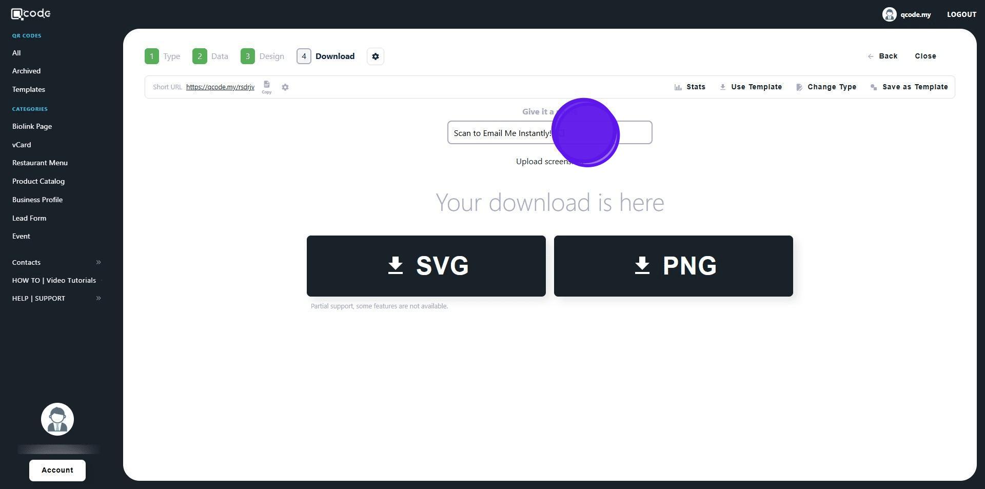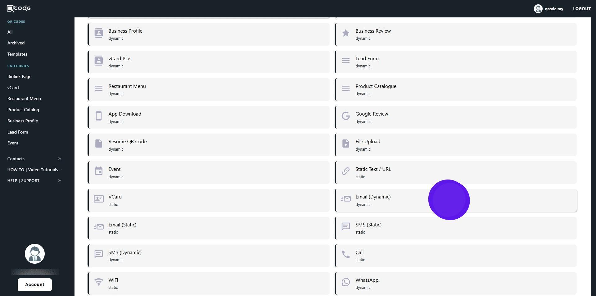 1. Navigate to https://qcode.my/dashboard/qrcodes