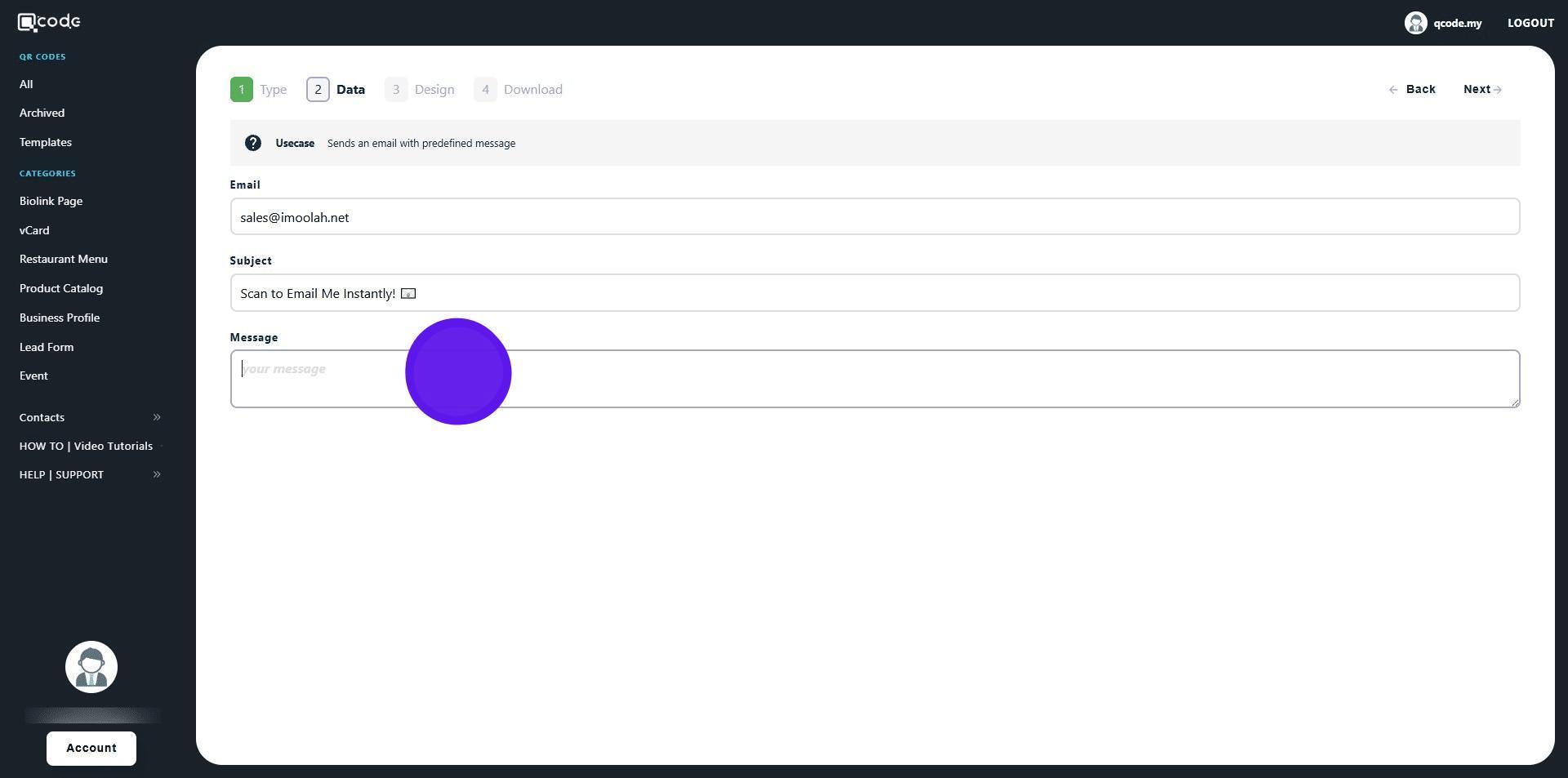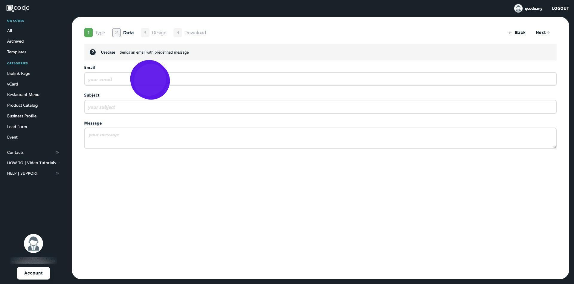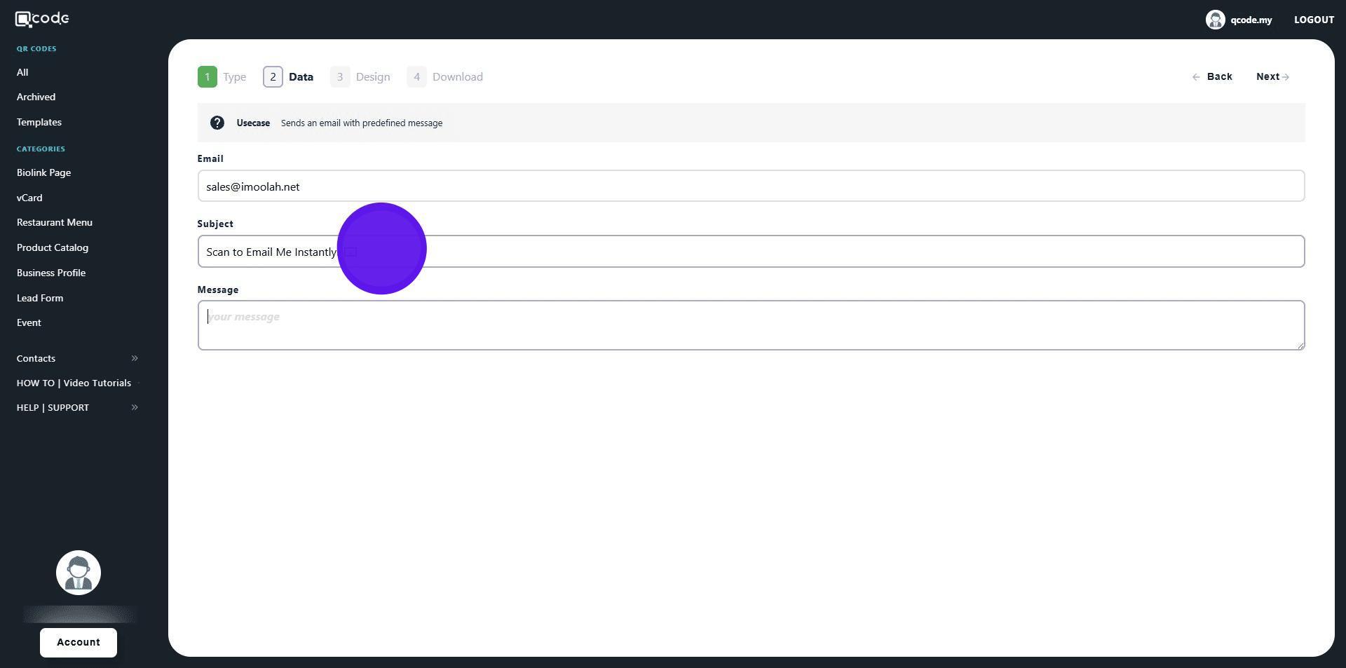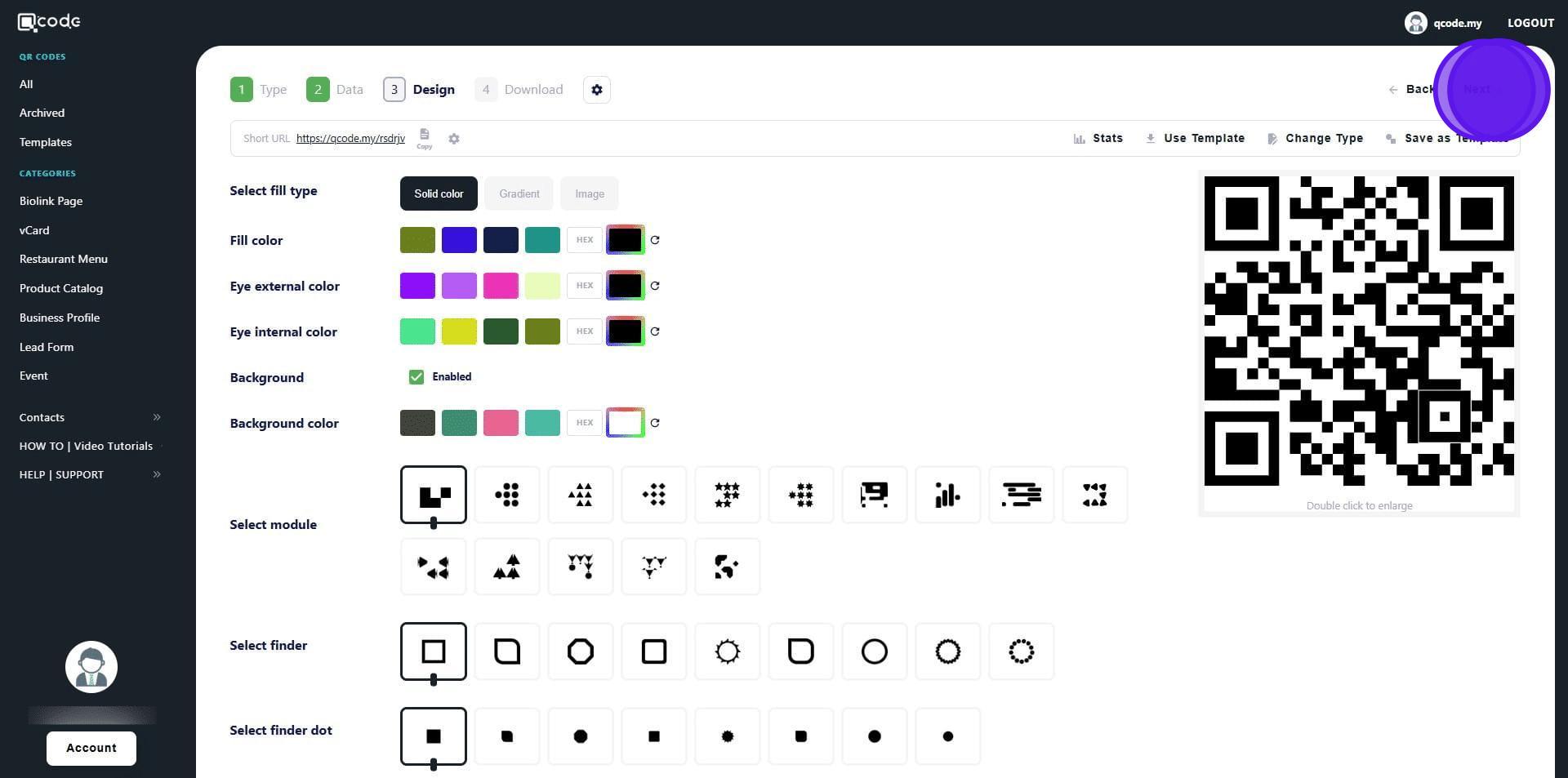1. Navigate to https://qcode.my/dashboard/qrcodes