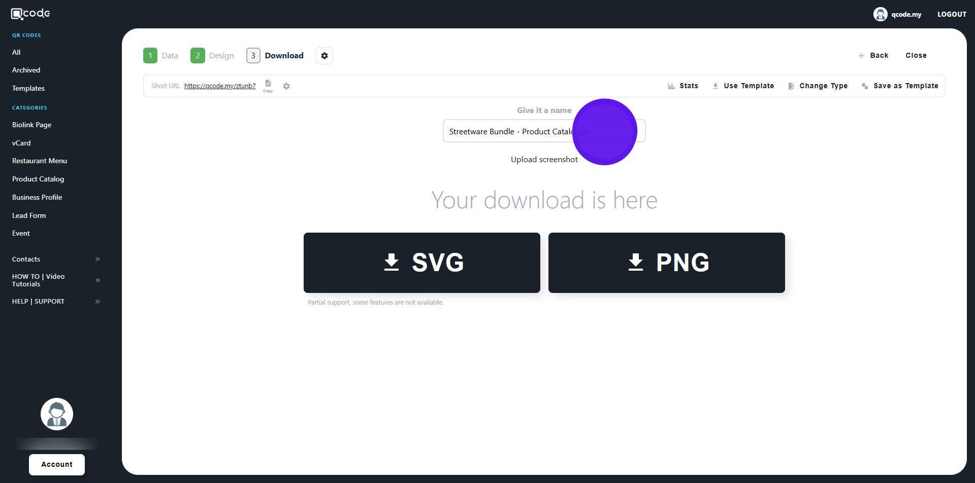 46. Click on SVG or PNG to download your QR Code in the following formats