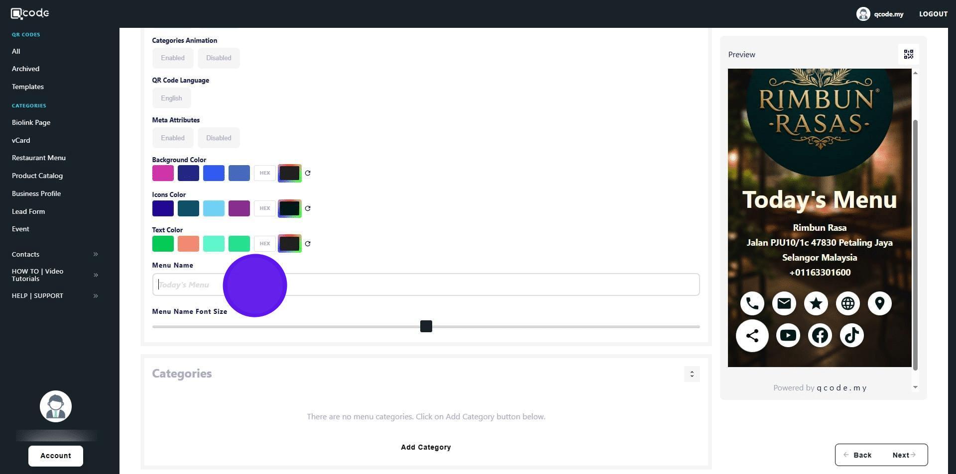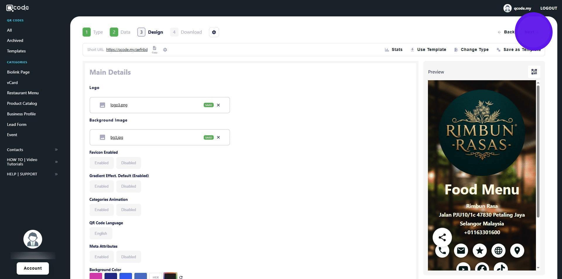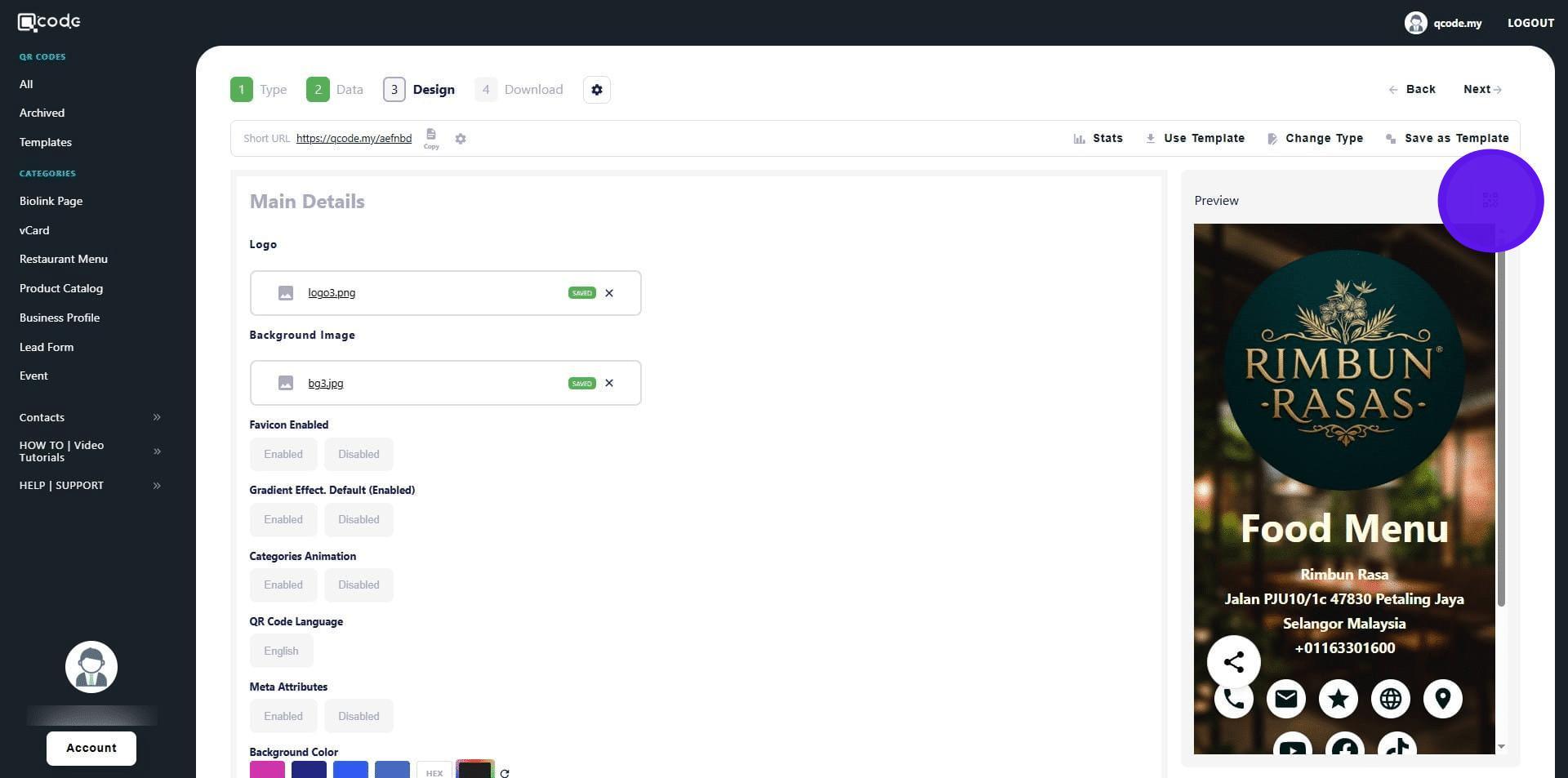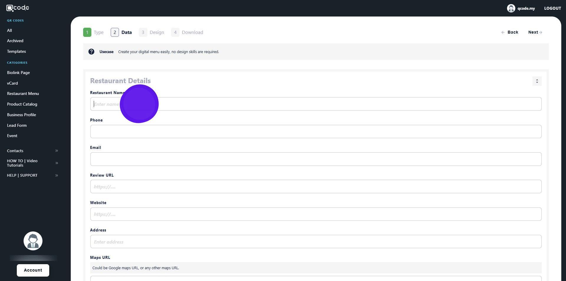 To create a digital restaurant menu with a QCODE.MY, follow these steps: Access the menu creation platform, enter your restaurant details, design the menu with categories and items (including names, prices, and images), customize the styling (colors, logo, background), and generate a QR code to download or share online. Finalize the slug before downloading to ensure functionality. Your menu is now ready for easy access via QCODE.MY.
