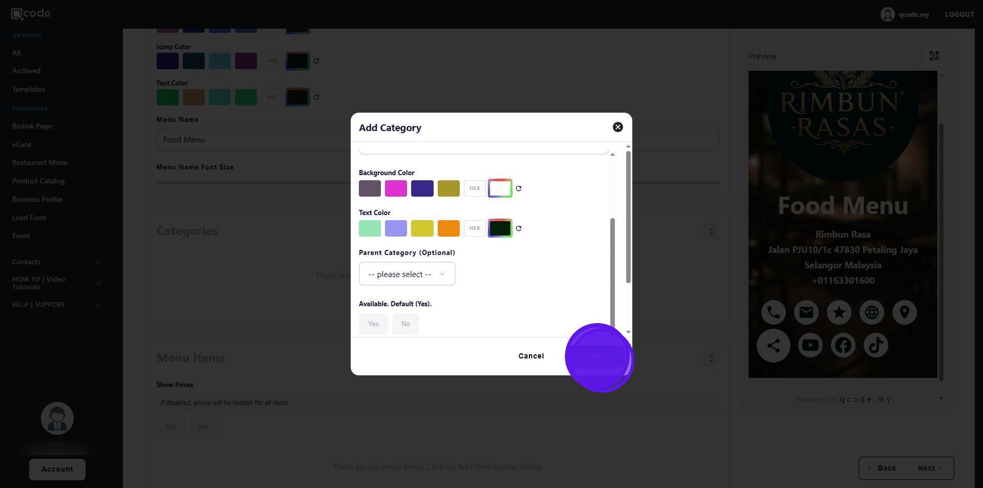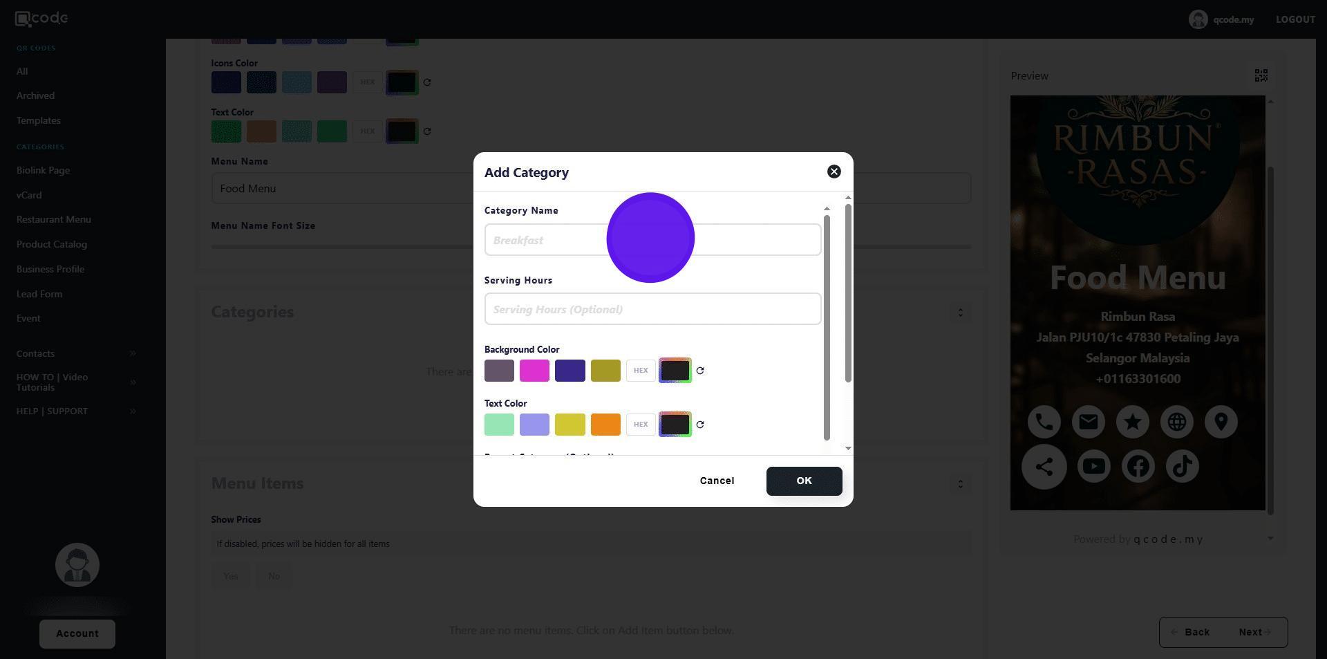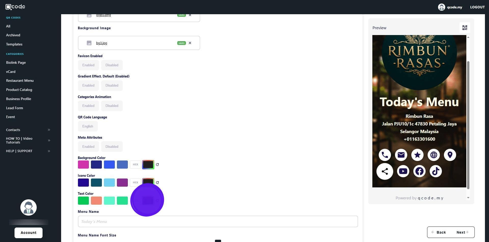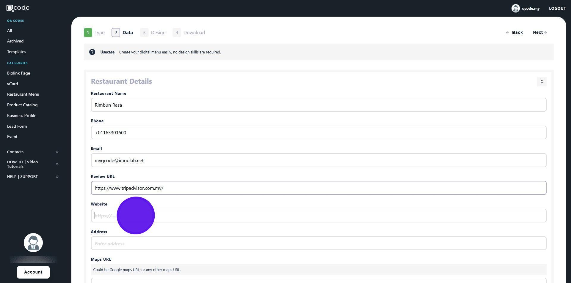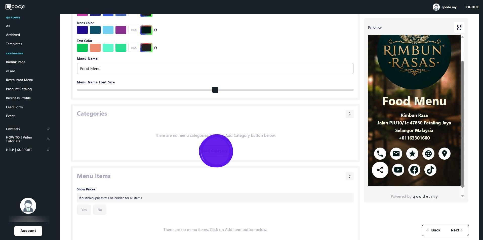 To create a digital restaurant menu with a QCODE.MY, follow these steps: Access the menu creation platform, enter your restaurant details, design the menu with categories and items (including names, prices, and images), customize the styling (colors, logo, background), and generate a QR code to download or share online. Finalize the slug before downloading to ensure functionality. Your menu is now ready for easy access via QCODE.MY.