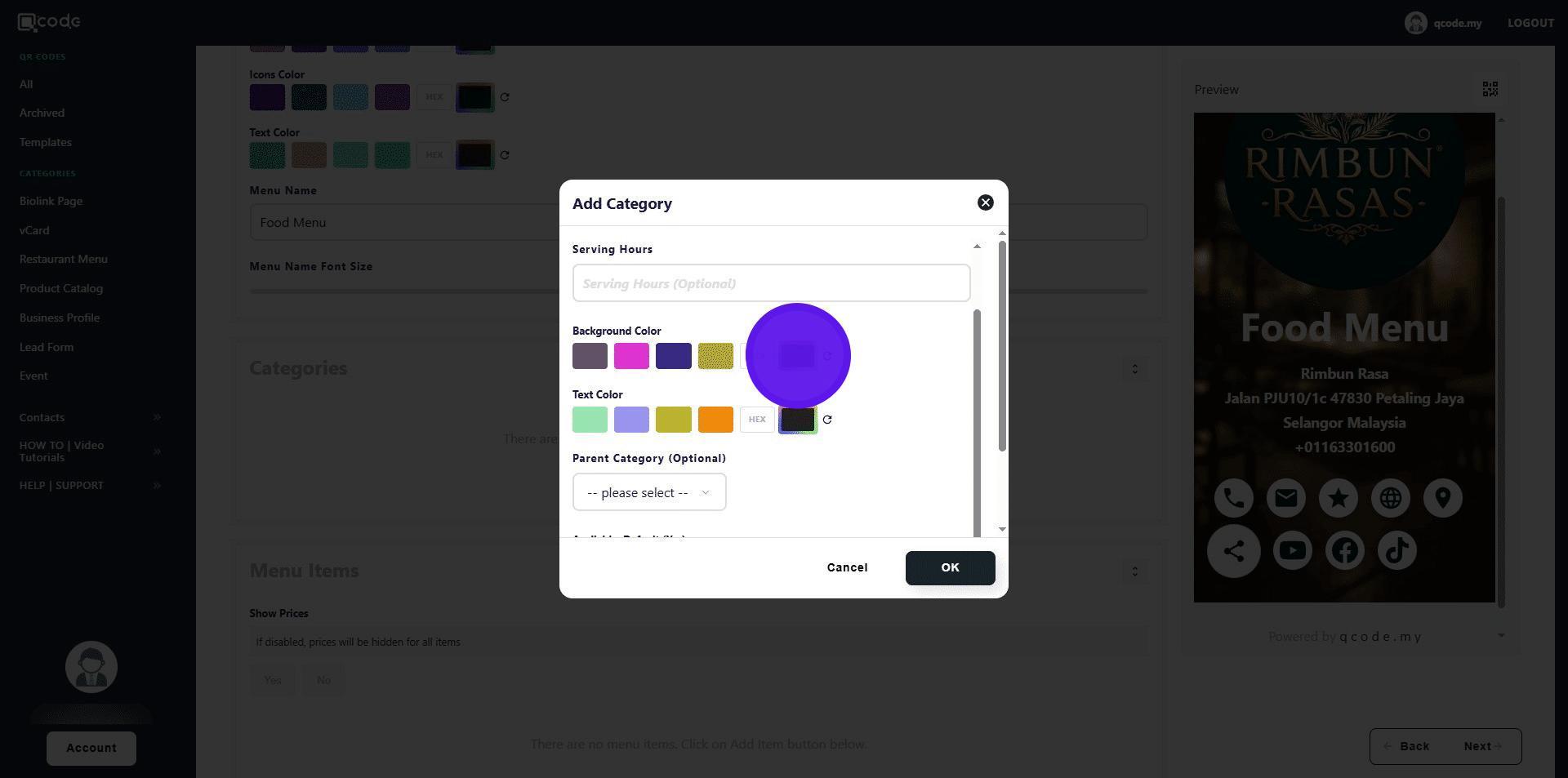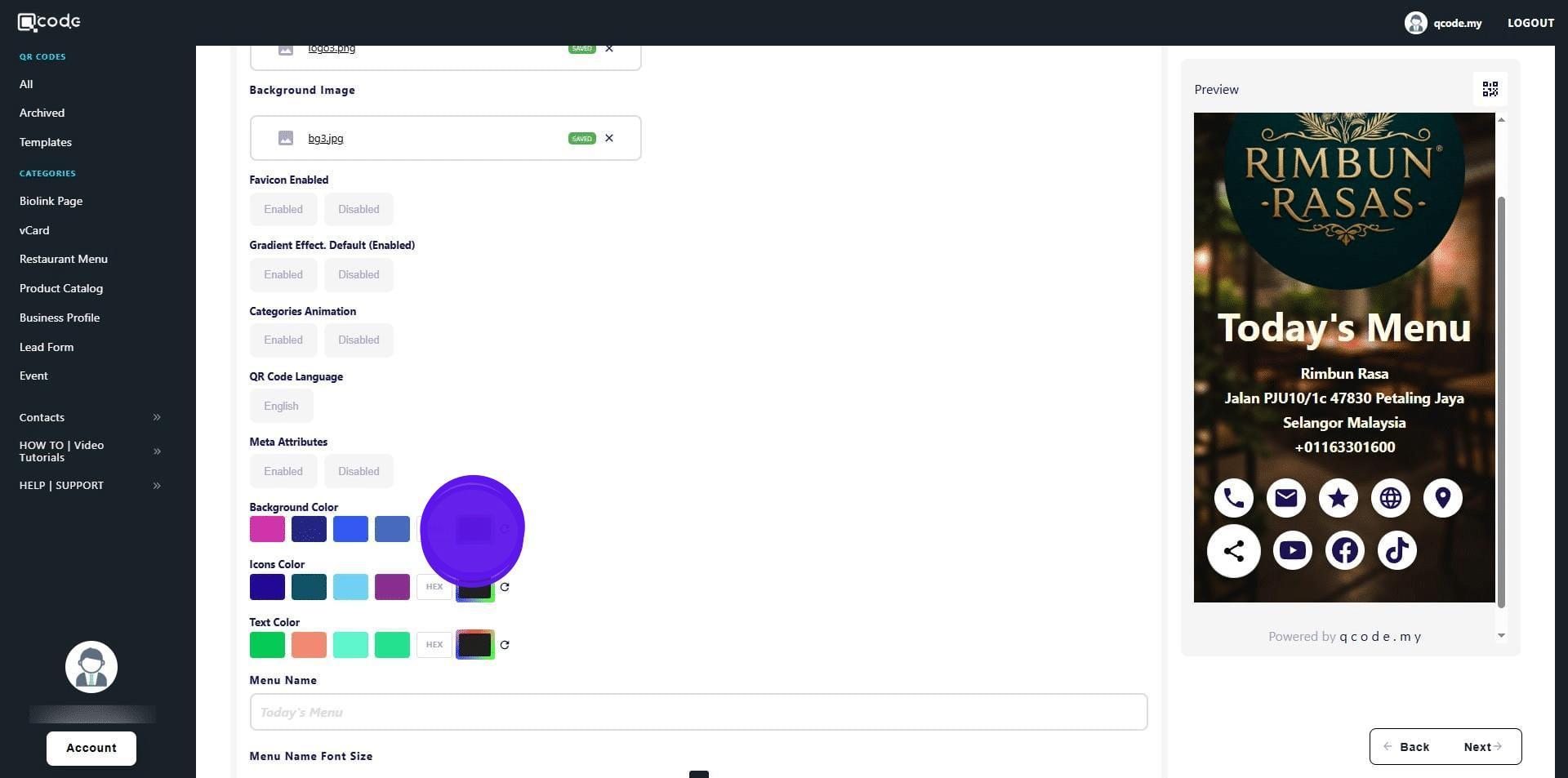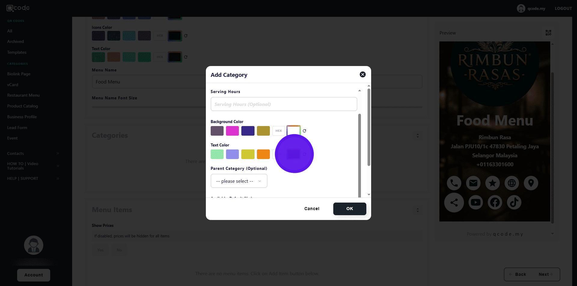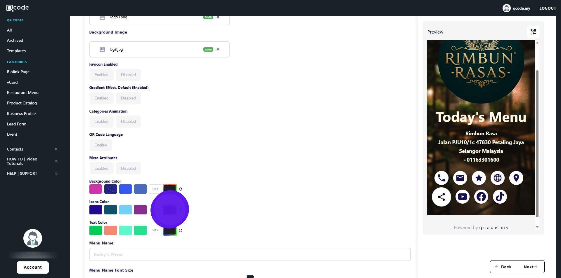 To create a digital restaurant menu with a QCODE.MY, follow these steps: Access the menu creation platform, enter your restaurant details, design the menu with categories and items (including names, prices, and images), customize the styling (colors, logo, background), and generate a QR code to download or share online. Finalize the slug before downloading to ensure functionality. Your menu is now ready for easy access via QCODE.MY.