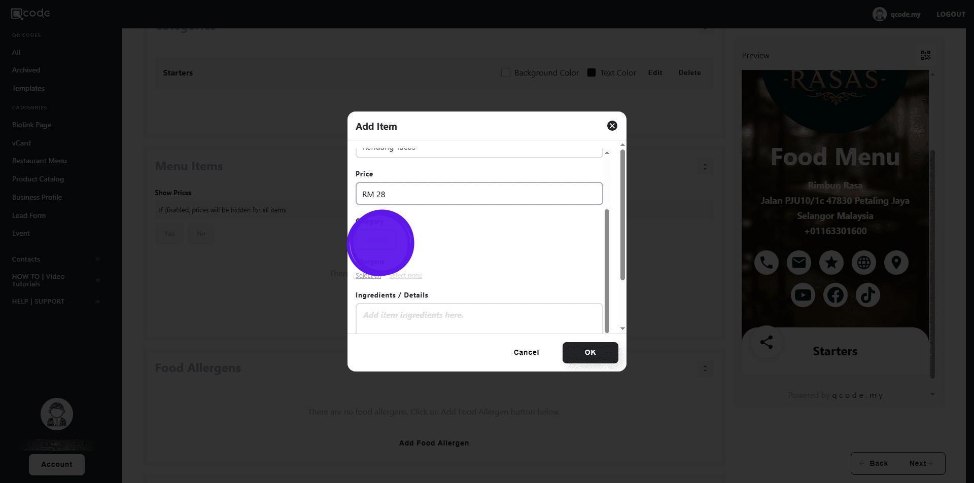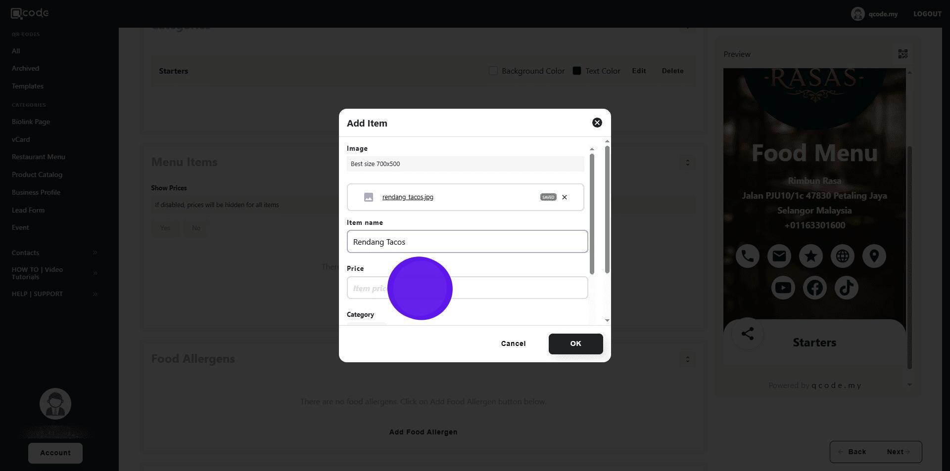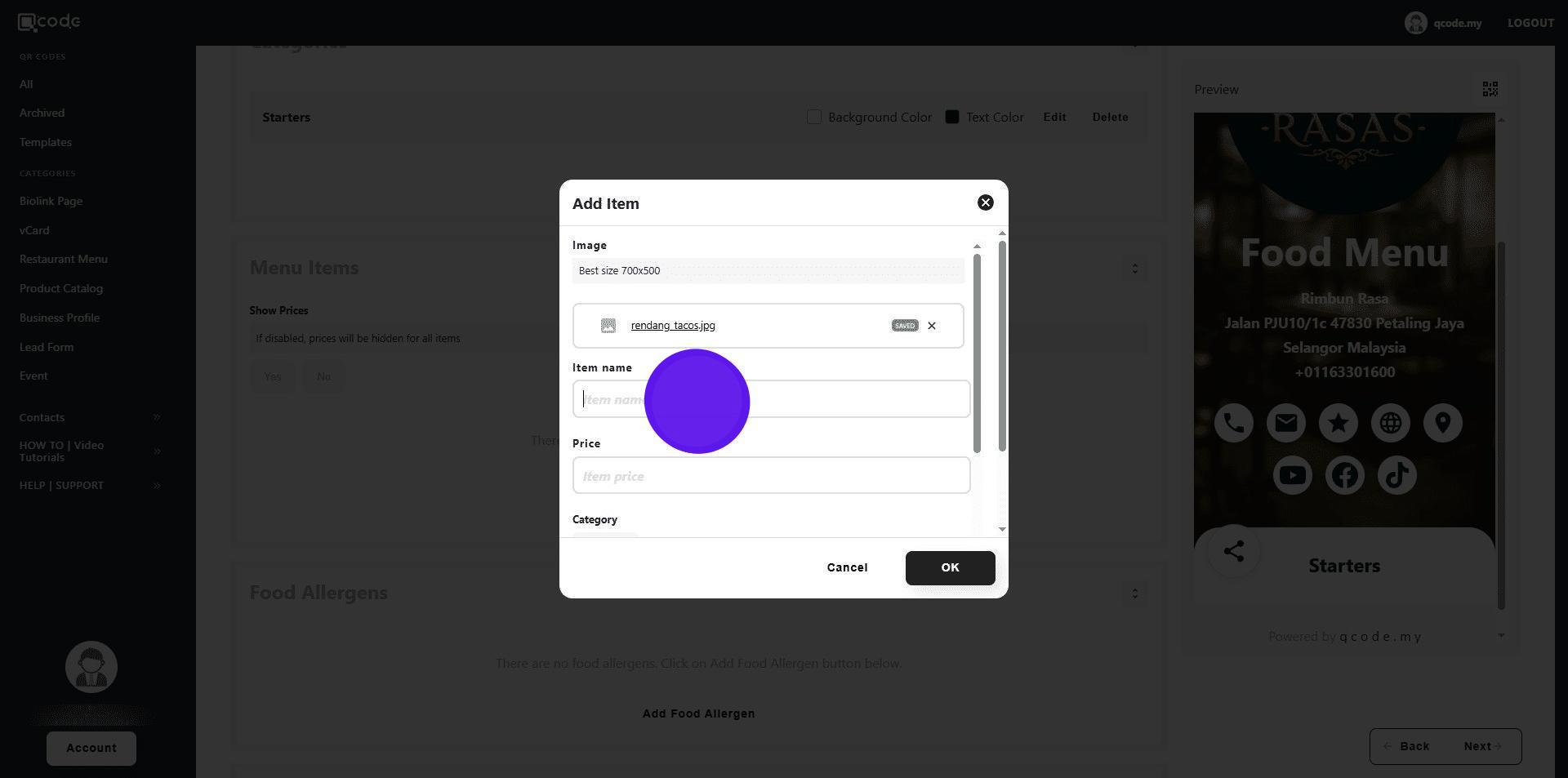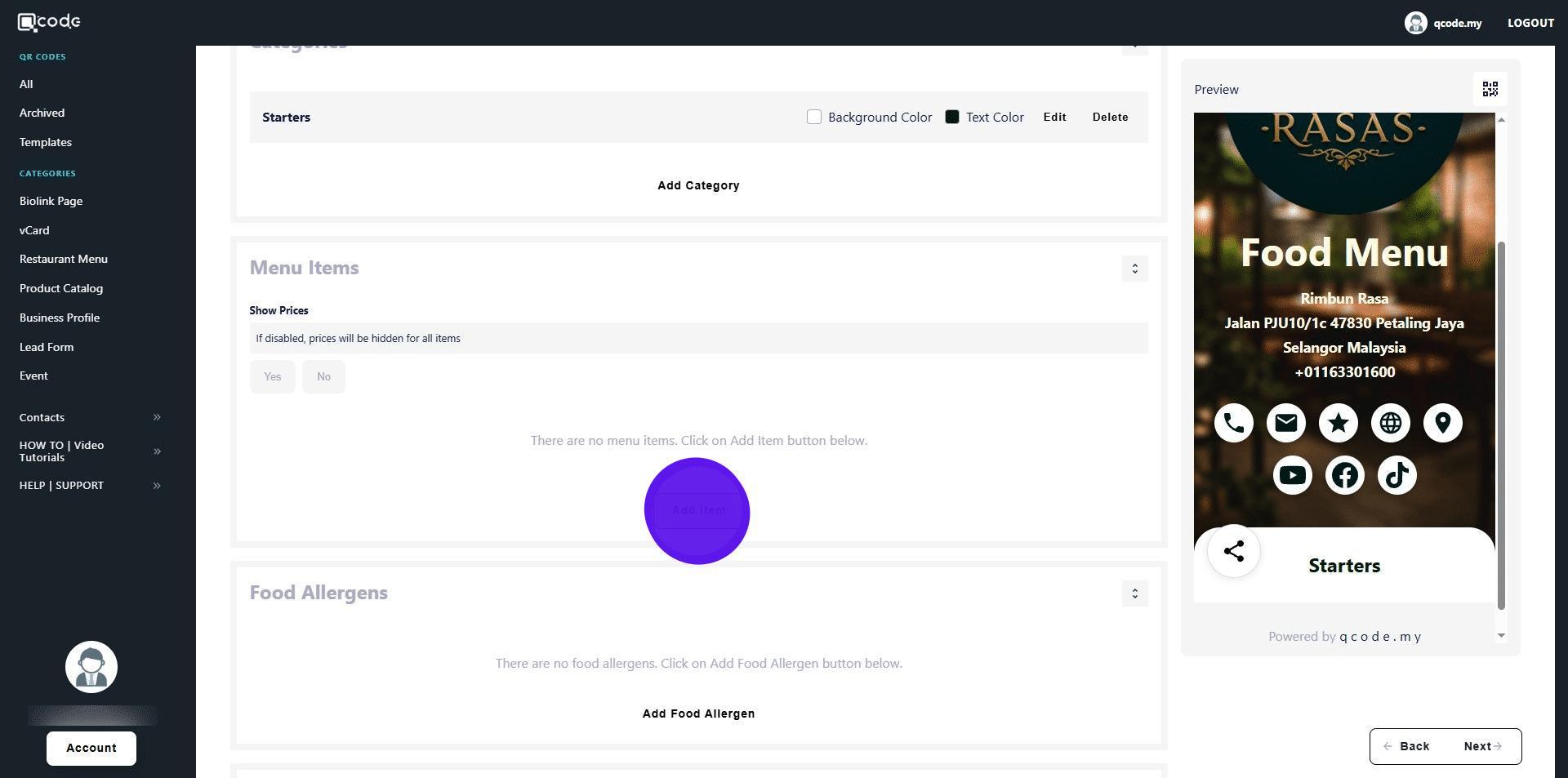 To create a digital restaurant menu with a QCODE.MY, follow these steps: Access the menu creation platform, enter your restaurant details, design the menu with categories and items (including names, prices, and images), customize the styling (colors, logo, background), and generate a QR code to download or share online. Finalize the slug before downloading to ensure functionality. Your menu is now ready for easy access via QCODE.MY.