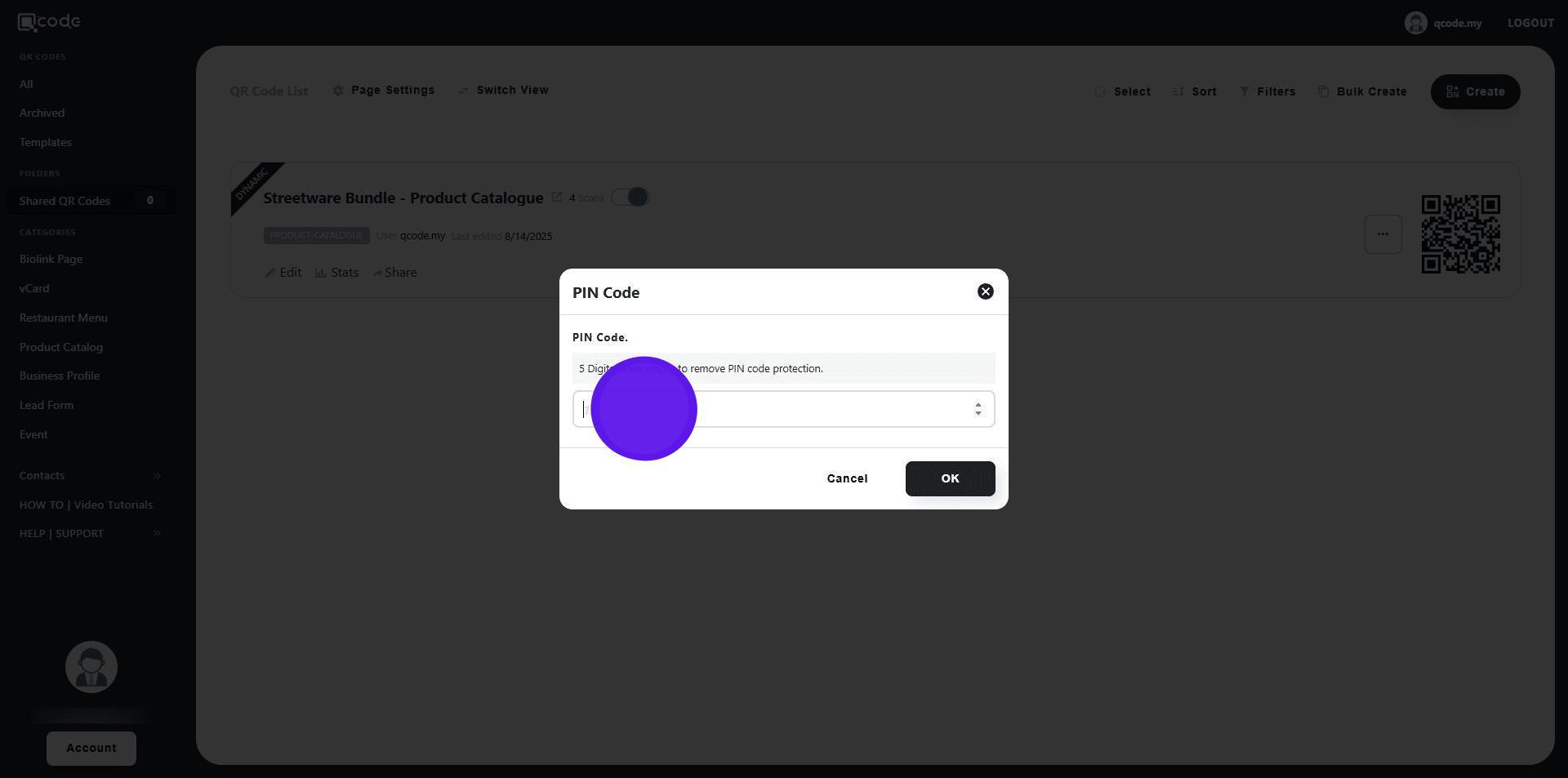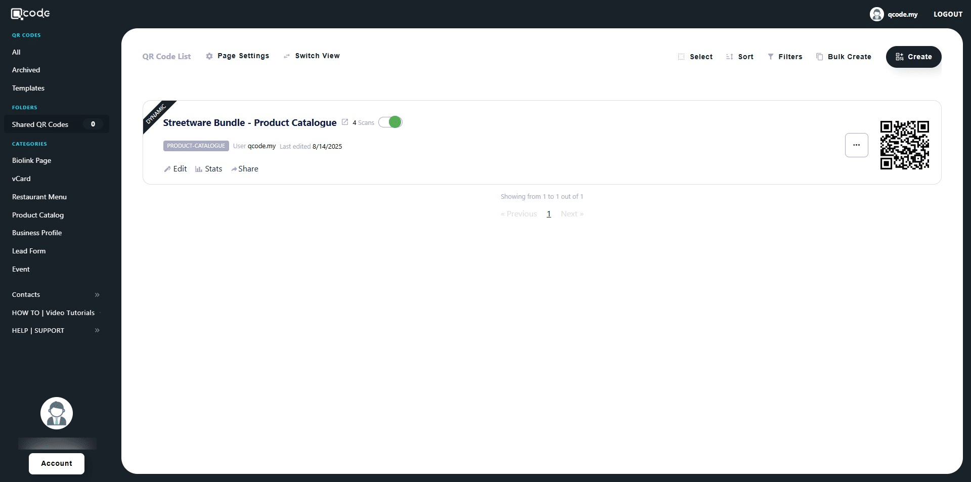 1. Navigate to https://qcode.my/dashboard/qrcodes?folder_id=28